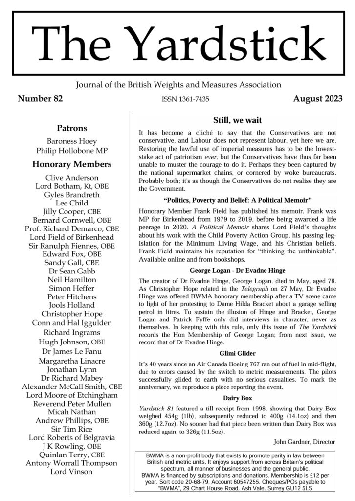 The Yardstick is the BWMA’s newsletter, which comes out several times a year. We aim to make all past issues of the Yardstick available on this page. Please note that members receive the latest issue exclusively, so this website is one issue behind. To receive the latest issue, please consider becoming a BWMA member.